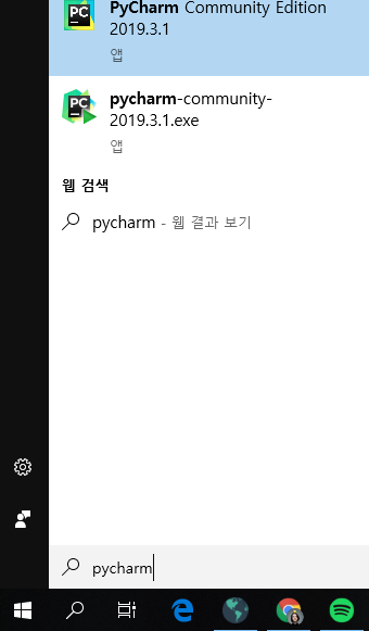 설치 후 윈도우 10의 경우에는 윈도우 버튼 클릭 후 pycharm으로 검색하면 바로 나오고