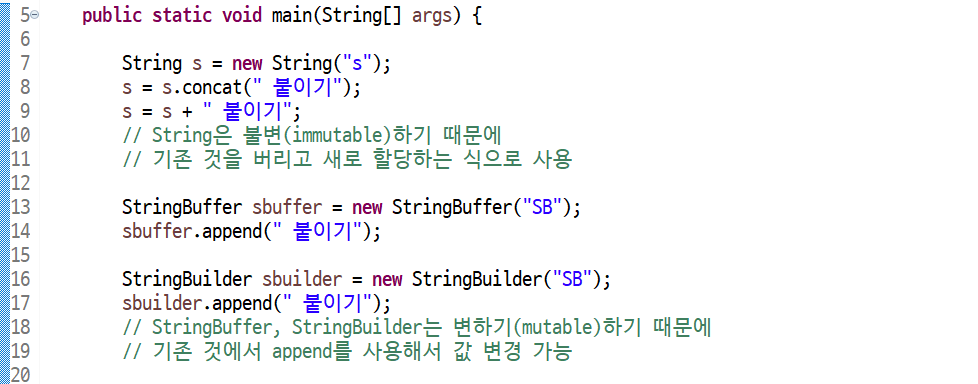 // StringBuffer, StringBuilder는 변하기(mutable)하기 때문에