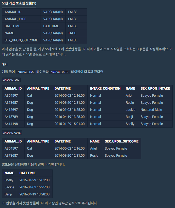 ANIMAL_INS는 아직 보호소에 있는 동물 테이블이고