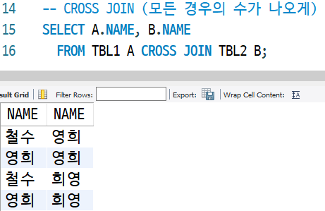 마지막으로 모든 경우의 수가 나오게 하는 CROSS JOIN인데