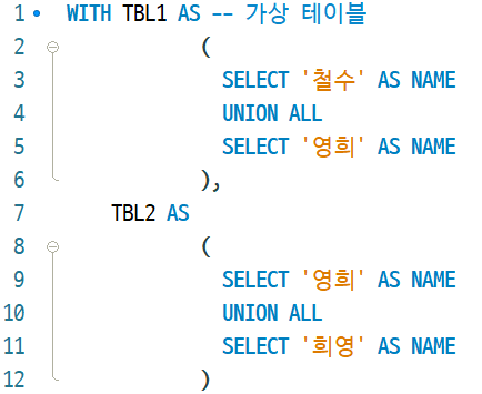 위 예제에서는 TBL1에는 철수, 영희가 들어있고
