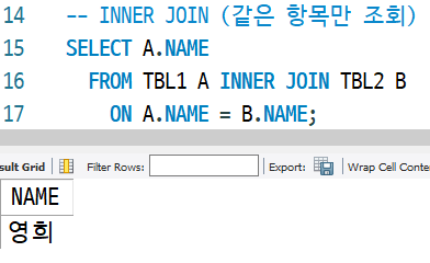먼저 TB1 테이블에는 영희와 철수라는 값이 들어있고