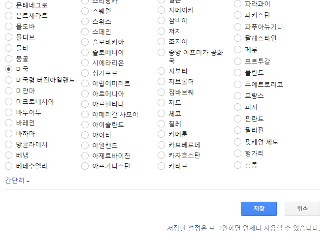 이후 미국을 선택해준 뒤 저장을 눌러주고 검색을 해 보면