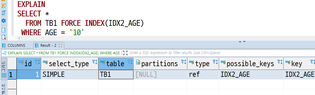 이럴 때 FORCE INDEX(인덱스명) 을 사용하면