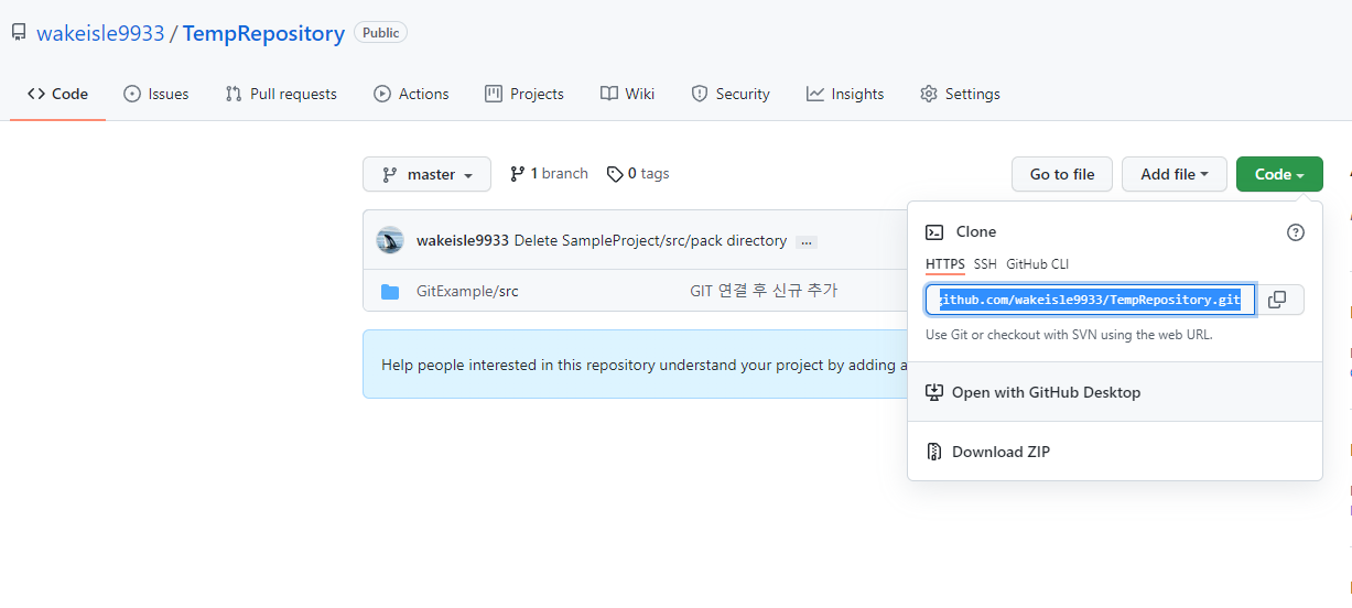 Repository를 만들고 우측의 링크를 복사한 뒤에