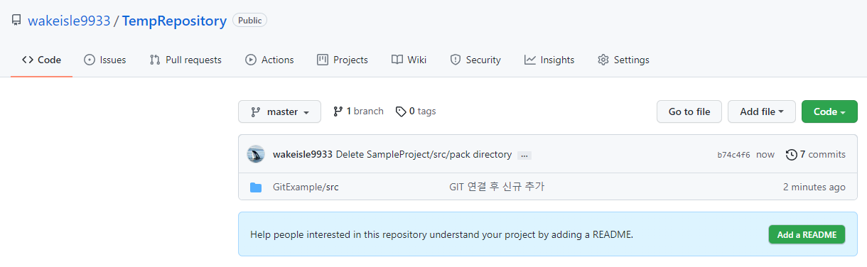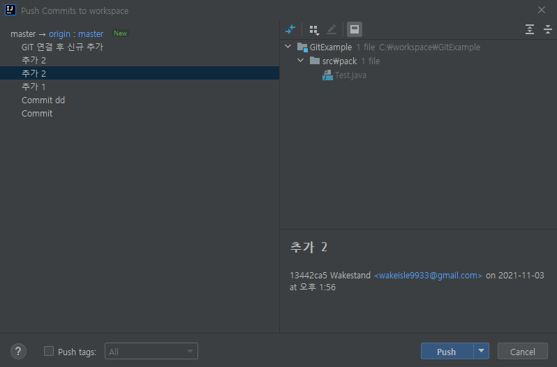 위 내용 Push한다고 나오는데 Push를 누른 후