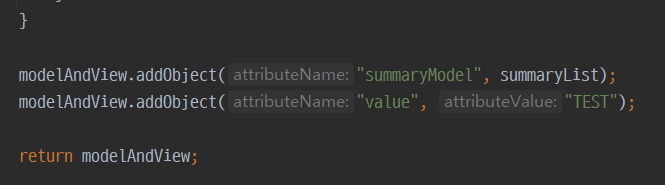 modelAndView에 담은 내용이 출력되는 것이 보인다